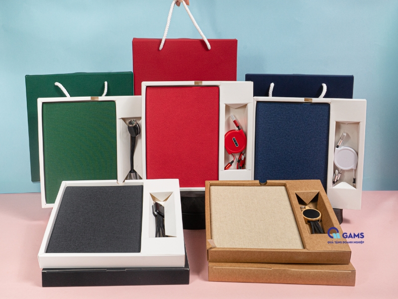 Để tiết kiệm chi phí tối đa cho khách hàng và mang đến những sản phẩm quà tặng doanh nghiệp cao cấp với mức giá rẻ nhất, Gams đã thiết kế sẵn hộp đựng quà cao cấp loại có nắp đậy, khay đựng sản phẩm, túi giấy đựng quà cùng tone màu như hình