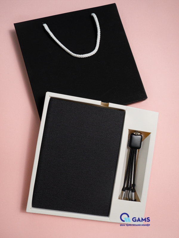 Bộ quà tặng cáp sạc 3in1 và sổ bìa da là ý tưởng quà tặng công nghệ sáng tạo, mang đến sự tiện ích và phong cách độc đáo cho người nhận.